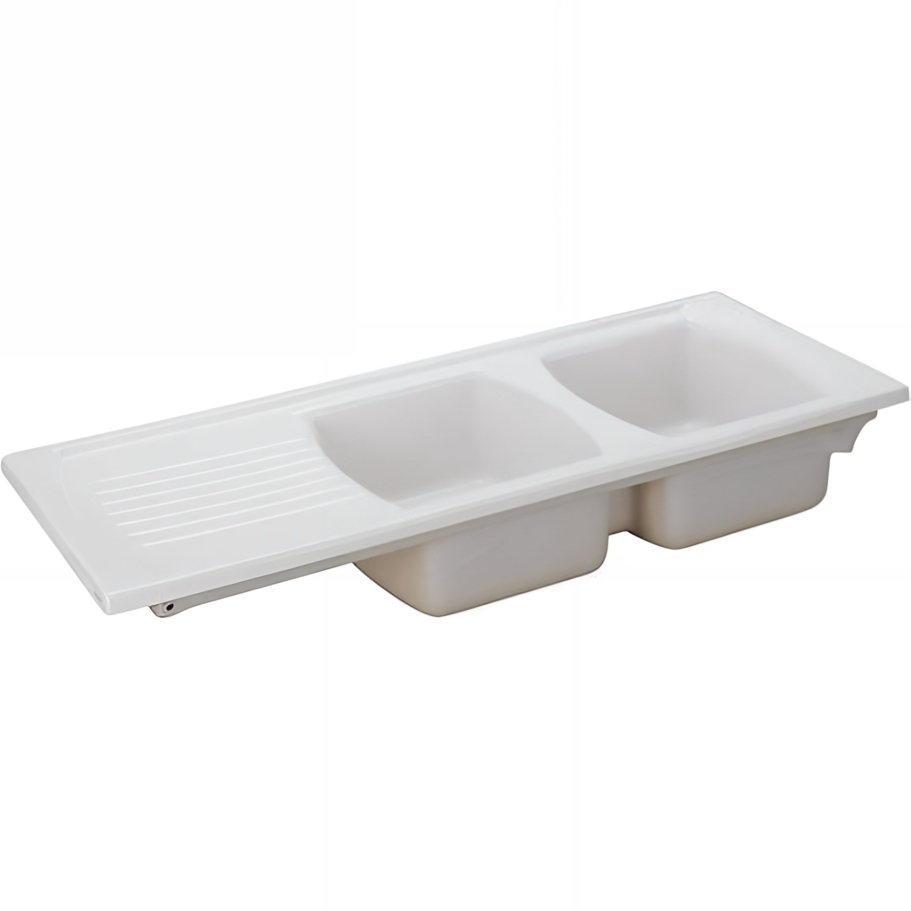 Évier Lusitano 2 cuves avec égouttoir, série Lusitano, poids 40.00, longueur 100, largeur 50, matériau Grès Fin, blanc. Composants : Vidage pour évier Lusitano 2 cuves. Livré sans accessoires