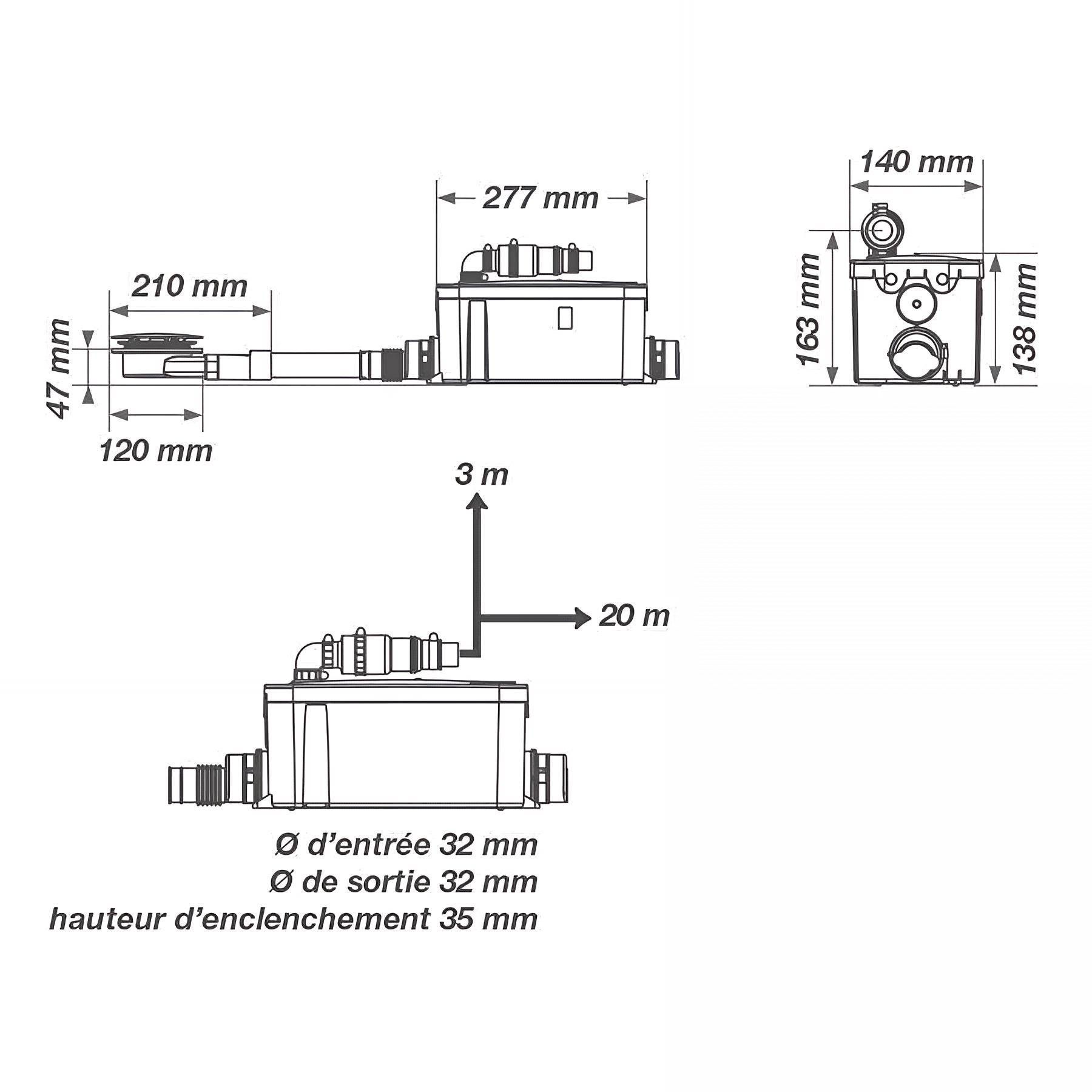Pompe de relevage VD90 pour cabine de douche KINEDO KINEMAGIC livré avec bonde de raccordement spéciale